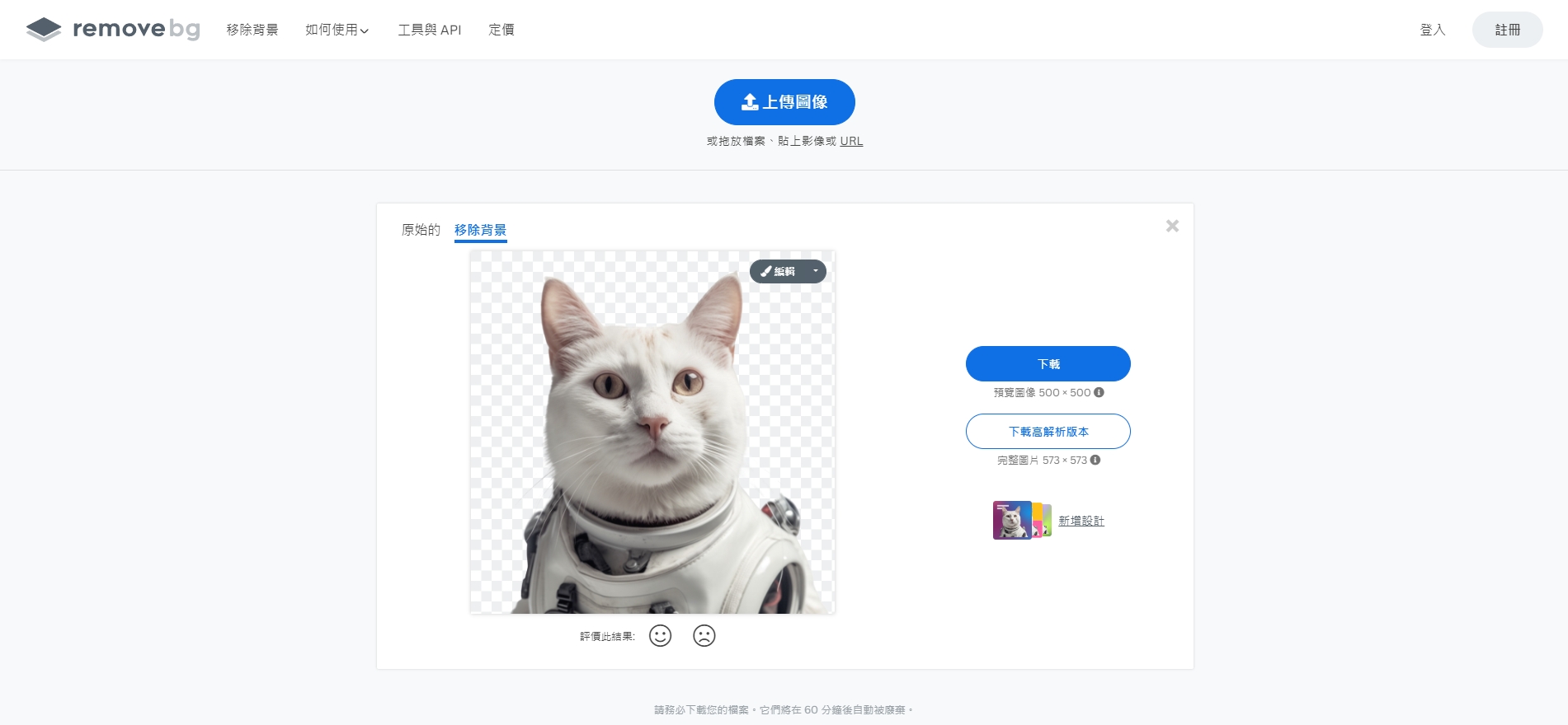 自動去背只需要幾秒鐘時間,沒問題的話點選「下載」就能保存、下載圖片(如要更高畫質或是數量更多,需要加入會員,還是非常划算)。