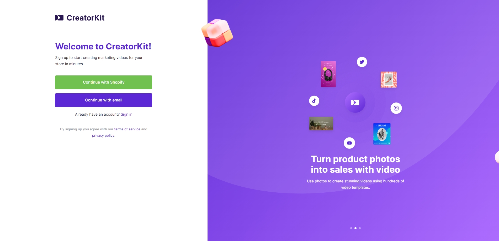 開啟 Creatorkit 網站後點選「Try it now」,並選擇創建帳號登入。