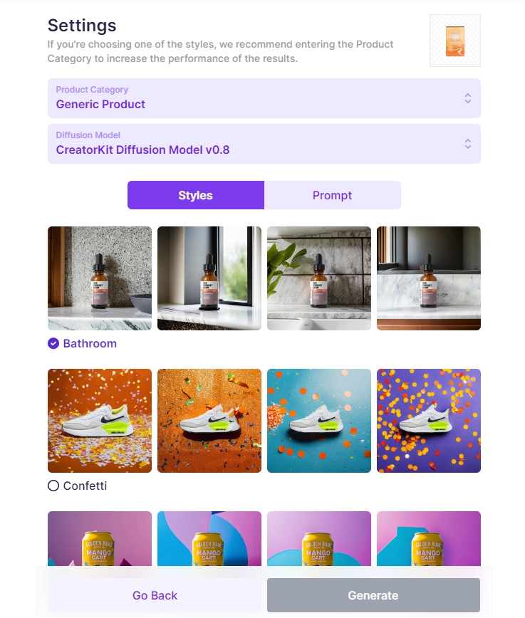 點選「Create with AI」,並上傳隨手拍攝的產品圖(可留意光線),並點選下一步。